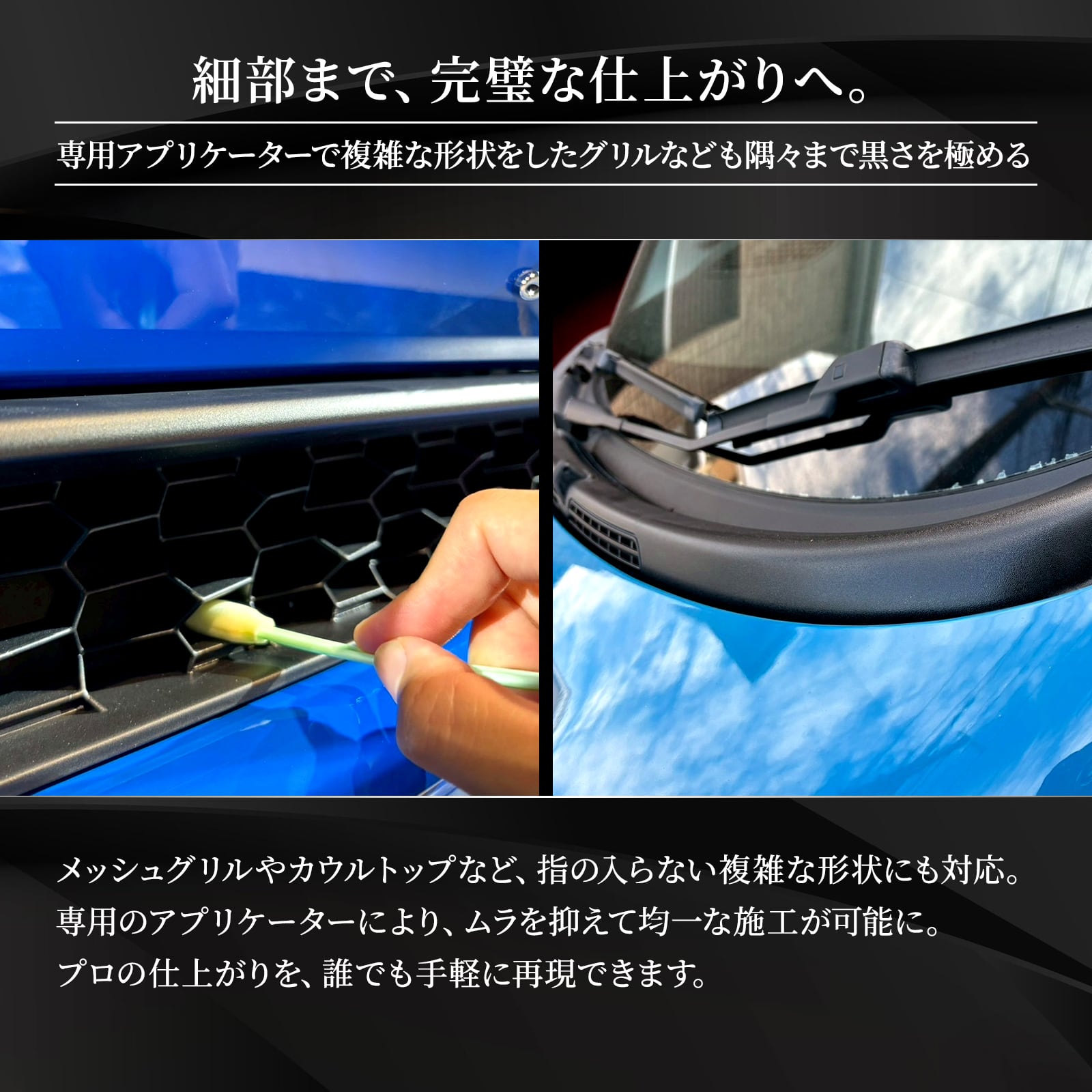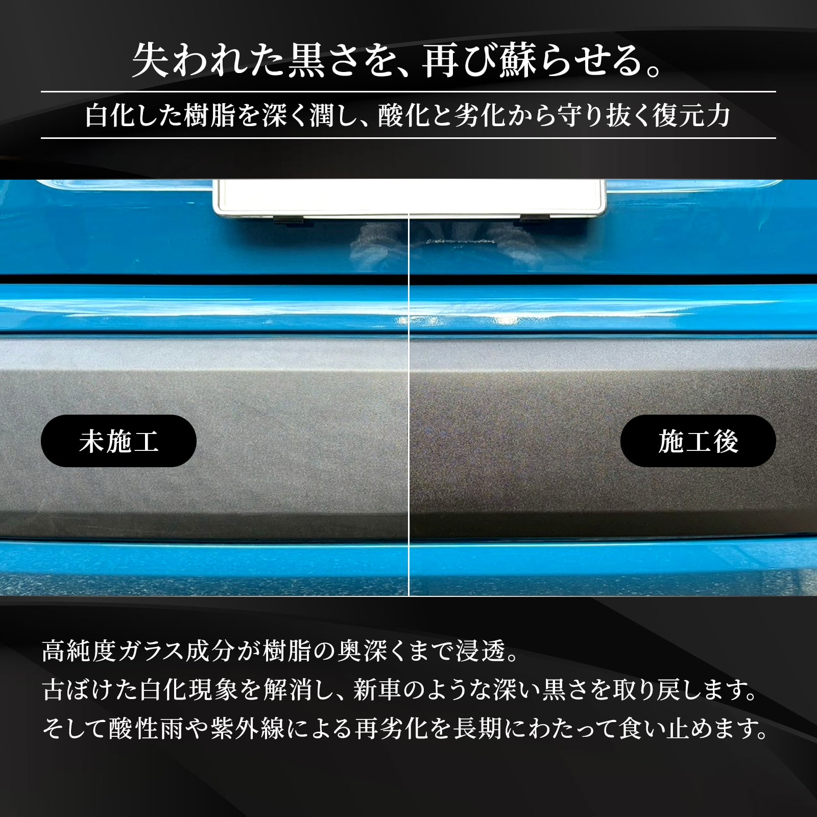 【高純度ガラス成分が未塗装樹脂パーツに浸透、新車以上の黒さへ】